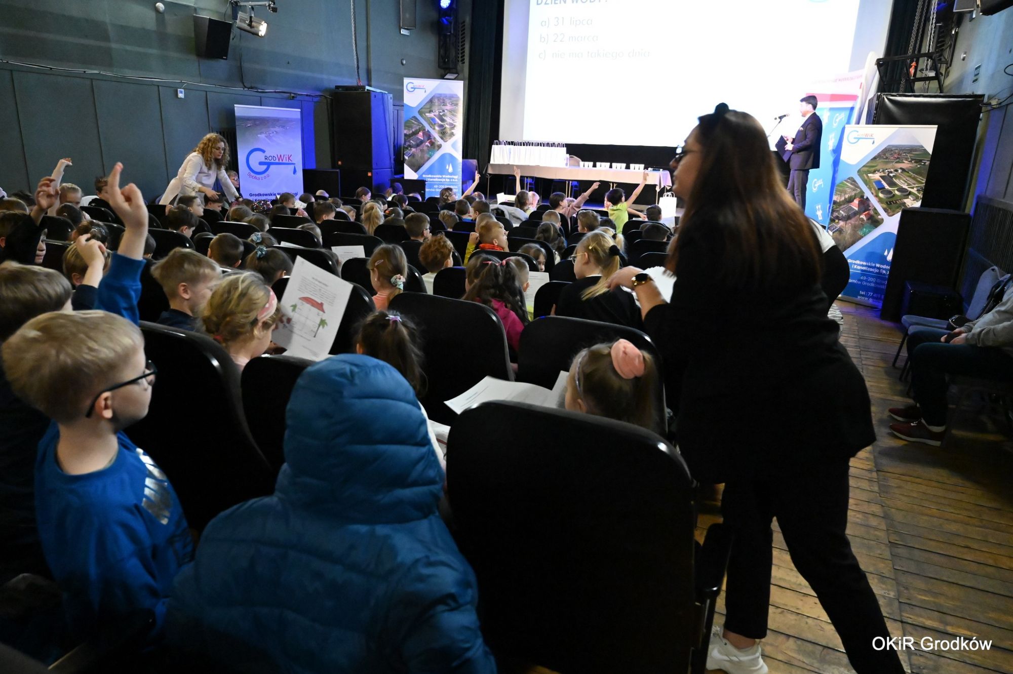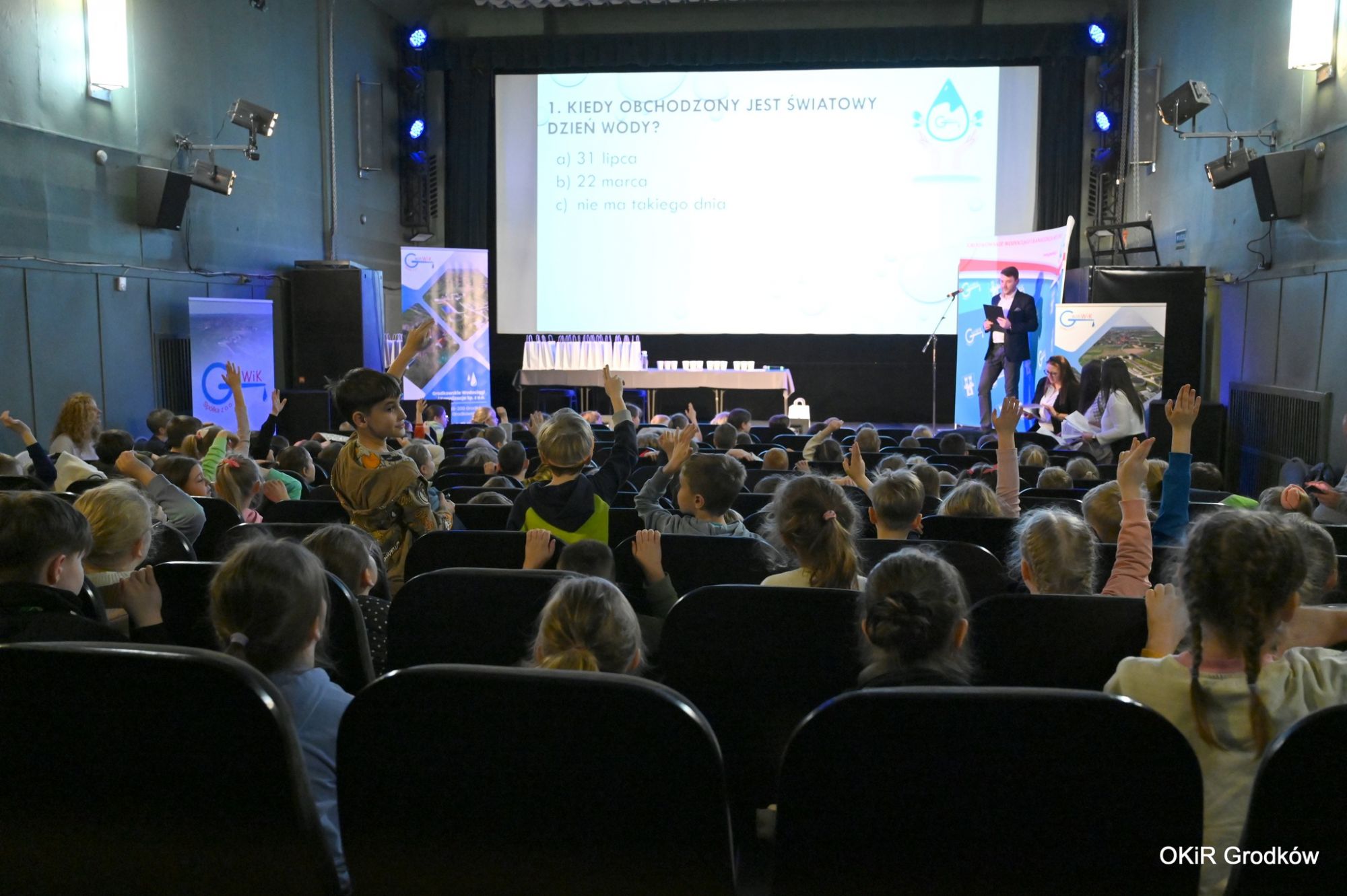 Tradycyjnie z tej okazji Światowego Dnia Wody w Kinie Klaps Grodków odbyły się warsztaty edukacyjne zorganizowane przez Grodkowskie Wodociągi i Kanalizacja Sp. z o.o. dla uczniów szkół podstawowych. Poza prelekcją, konkursem wiedzy o wodzie, hydrozagadkami był też konkurs na rozpoznanie wody z kranu, z plastikowej butelki i lekko gazowane. Najbardziej oczekiwanym momentem było jednak wręczenie nagród w konkursie plastycznym.